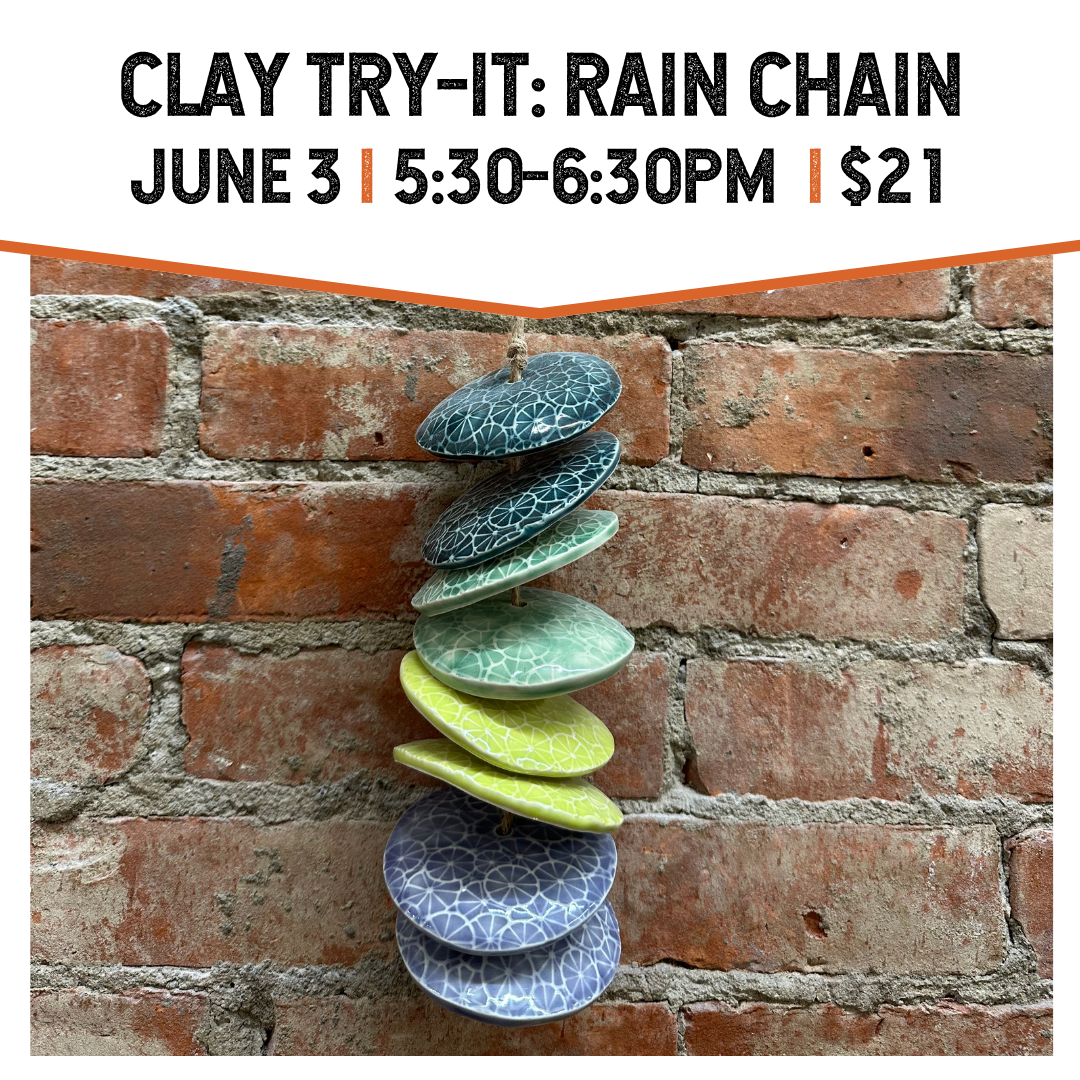 Create a functional piece of outdoor art in this unique clay workshop. You’ll design and shape a series of ceramic forms that connect into a rain chain—guiding water while adding movement and color to your space. A great blend of creativity and function, perfect for gardens, porches, or patios.