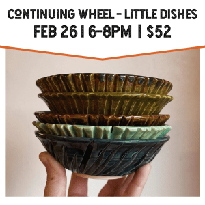 Learn to throw trinket dishes or small tapas plates in this relaxed wheel class. You’ll practice repeat throwing from the hump and refine your small-form techniques.