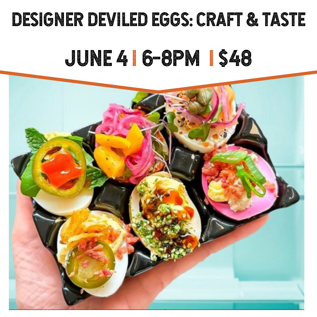 Take your deviled egg game up a notch with this tasty workshop! Make a deviled egg tray in our clay studio and taste test some delicious deviled egg specialties from Studio D catering.