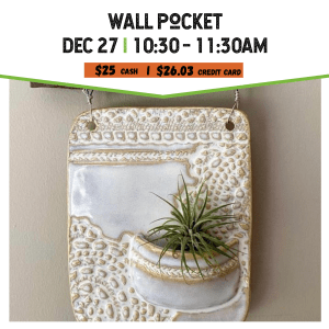 In this quick clay class, you’ll hand-build a decorative wall pocket—perfect for holding small plants, notes, or treasures. Add texture and personal touches to make it uniquely yours in just an hour.