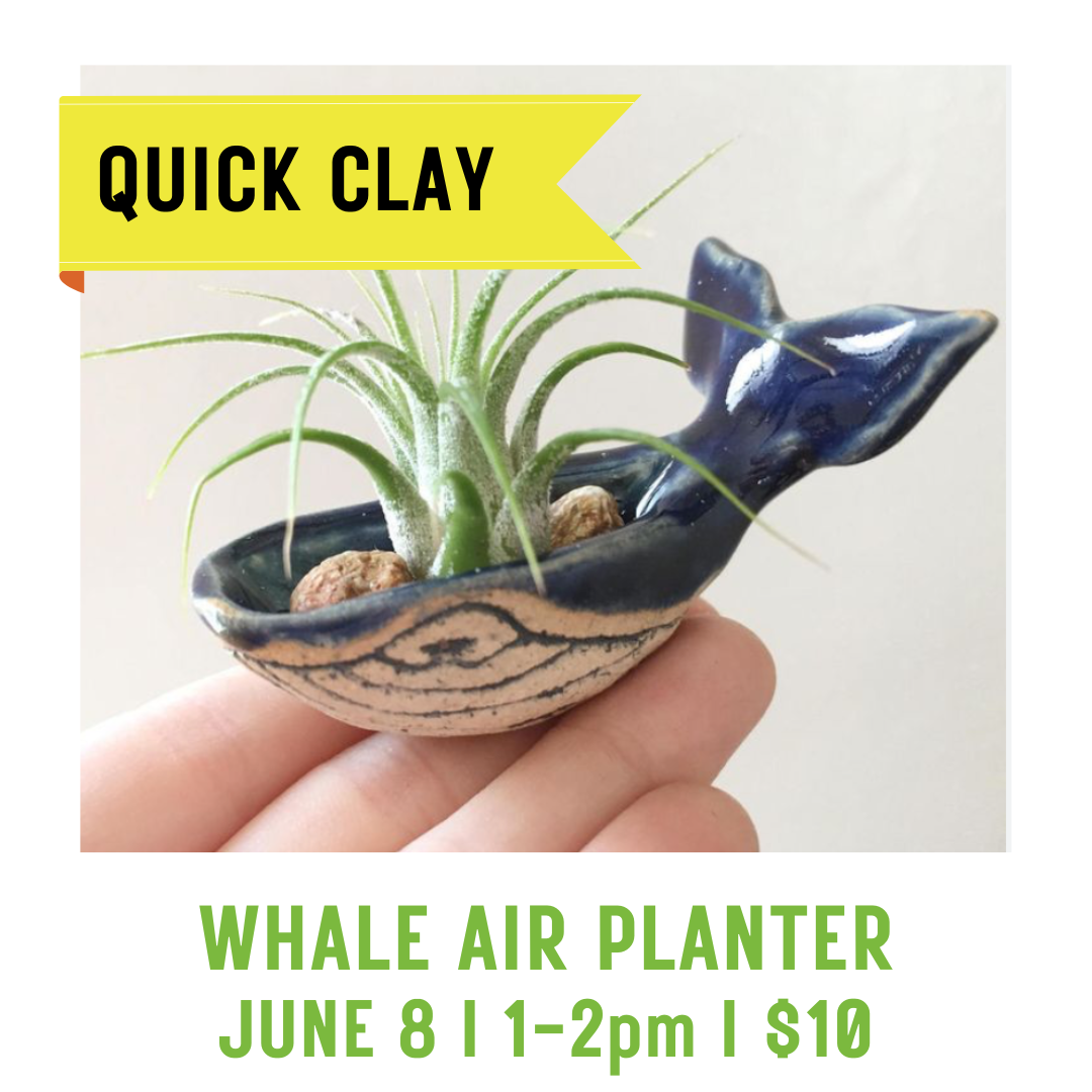 It’s World Ocean’s Day, so we are celebrating with some ocean themed fun. Join us in the studio to make a little air plant holder shaped like a whale.