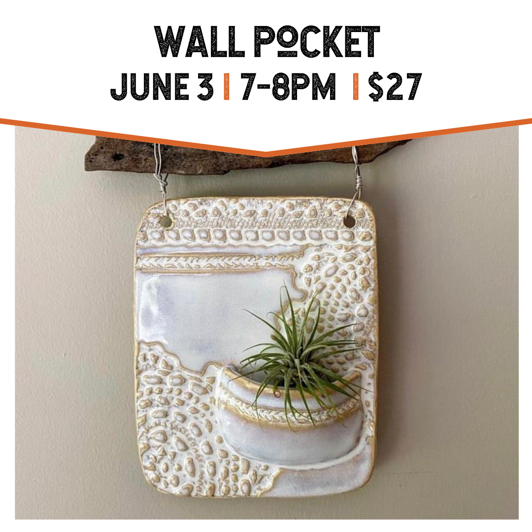 Create a beautiful wall-mounted piece that doubles as functional décor. You’ll shape and decorate your own ceramic pocket—perfect for holding plants, dried flowers, or small treasures. Texture and surface design options make each piece completely unique.