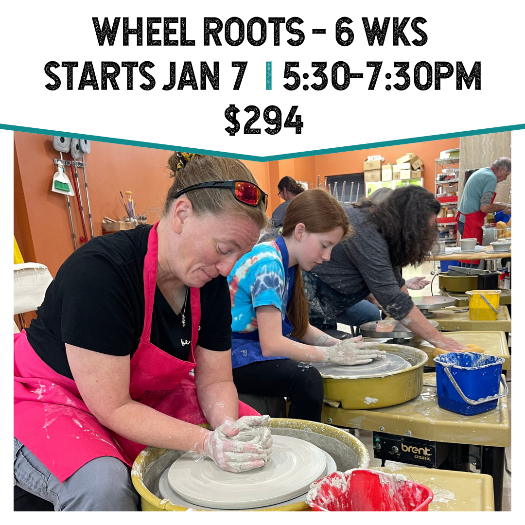 A six-week beginner pottery wheel course designed to help new students build confidence and consistency. Learn centering, pulling walls, trimming, and glazing while developing your skills week by week.