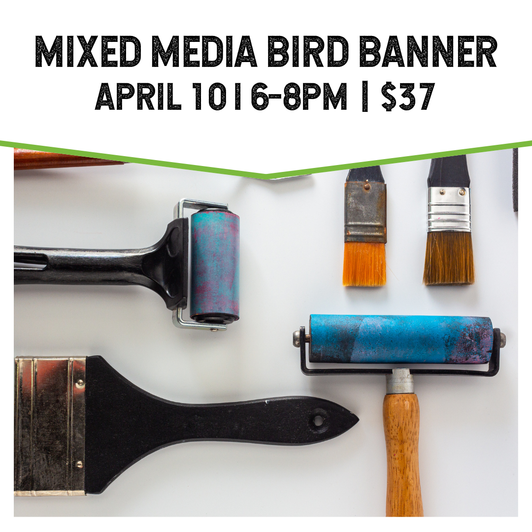 Combine paint, paper, and fabric to create a vibrant mixed-media banner featuring bird imagery. A joyful art-making session perfect for creative exploration. BOOK YOUR SEAT!