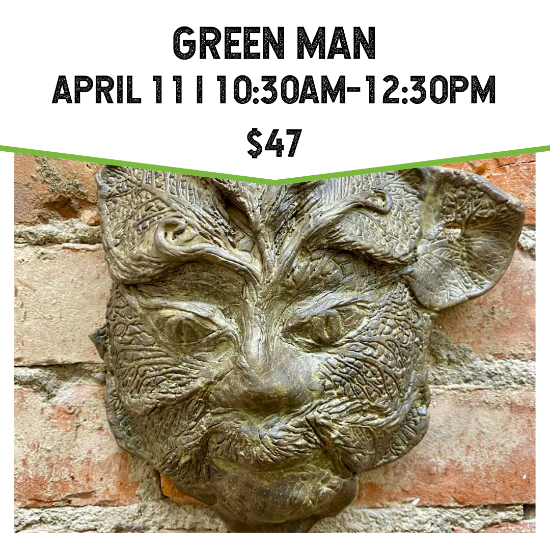 Explore nature-inspired sculpture while creating a Green Man wall piece. Students will hand-build a face emerging from leaves and vines, adding expressive details and texture before glazing. A great class for those who enjoy myth, folklore, and organic forms. BOOK YOUR SEAT!