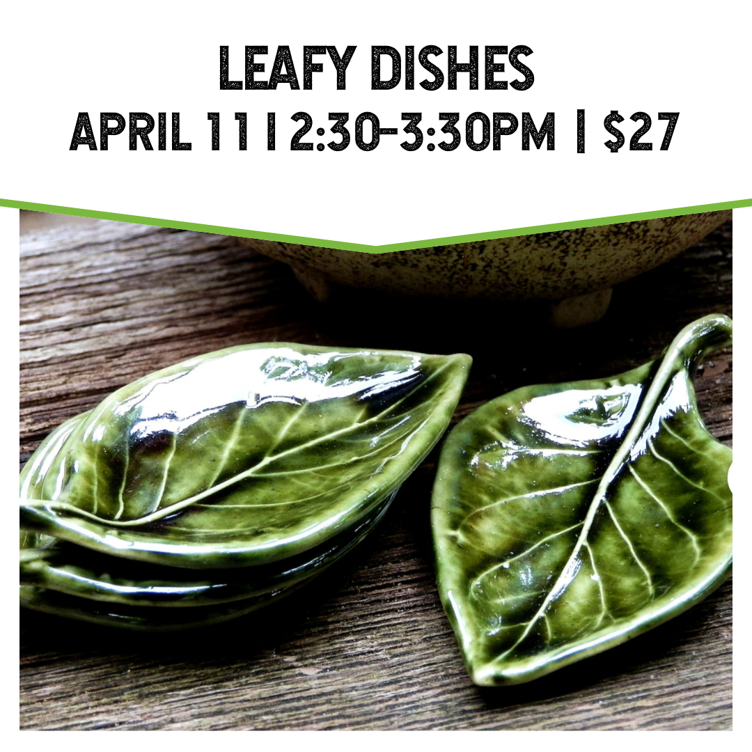 Make a set of small leaf-shaped dishes using real leaves for texture. These hand-built pieces are perfect for jewelry, trinkets, or small snacks and make great gifts or keepsakes. BOOK YOUR SEAT!