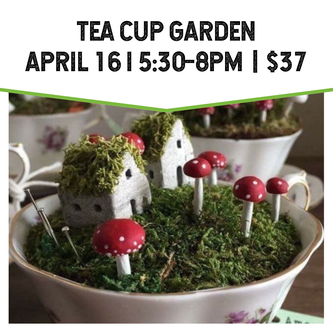Design a whimsical mini garden in a teacup using a mix of natural and decorative materials. A perfect craft class for spring and a fun way to bring greenery indoors. BOOK YOUR SEAT!
